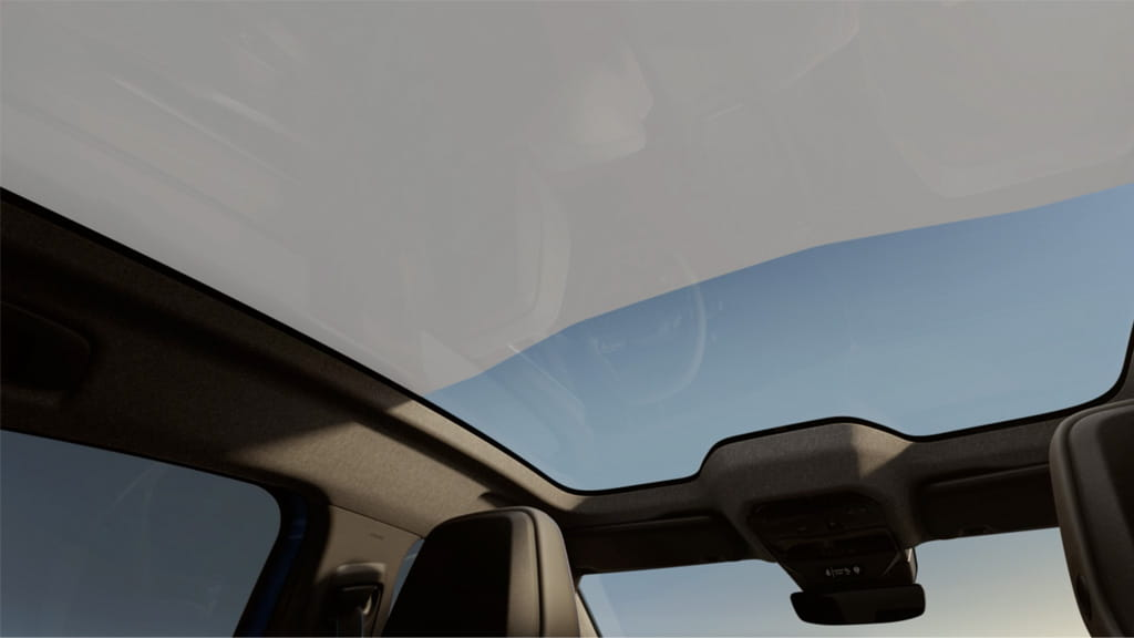 Det stora panoramaglastaket Solarbay bjuder på ett varierat ljusinsläpp som du enkelt styr med rösten, en detalj som lyfter stämningen på väg till ett tidig starttid eller en sen kvällsrunda.