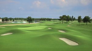 Greenerna är rätt ondulerade så ibland är det bättre att klubba upp en klubba. För att slå ett slag med mindre spinn för att få den att stanna direkt. För att undvika för mycket back spinn.
