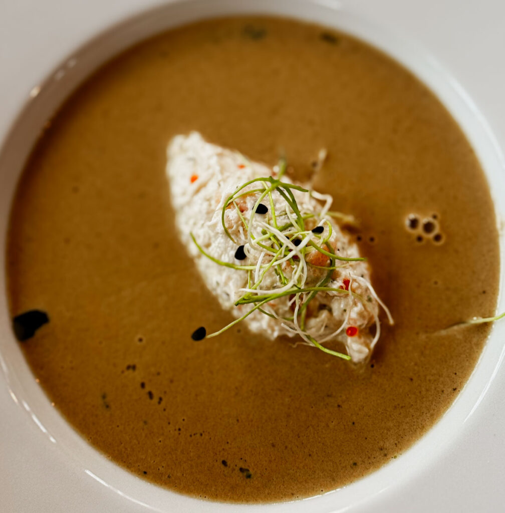 Restaurangen har tydligt höga ambitioner och erbjuder ett prisvärt paket med trerättersmiddag för 599 kronor. Soppan till förrätt håller mycket hög nivå, medan köttet kräver viss noggrannhet vid beställning – det lönar sig att vara tydlig med hur man vill ha det.